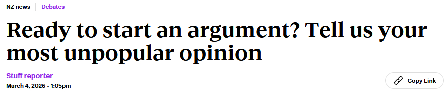 The ‘evil little budgies’ of ‘Stuff’ … know all too well … that there are far more important things … actually ‘existential’ things to debate - things that the future of Kiwis … the future of most humans on this planet … are very dependent on ‘debating’