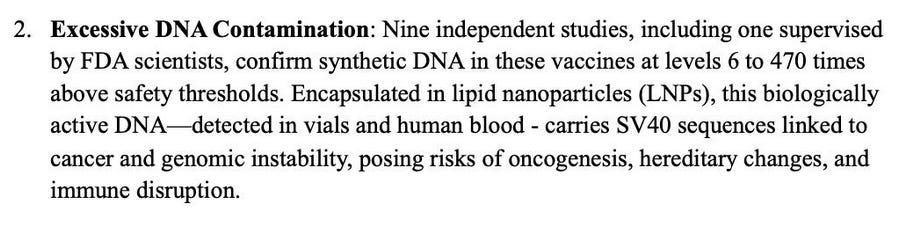 mRNA was encapsulated inside ‘Lipid Nano Particles’ (LNPs) which are designed to evade the human body’s immune system defenses … and deliver a genetic payload into the very nucleus … of up to several trillion … of the 38 trillion or so cells that make up a human body - dozens of independent laboratories Worldwide … have since found active, undisclosed DNA/SV40 contamination in every vial tested so far … pretty shocking stuff … but the only screaming I’ve heard recently … is when my neighbor’s goldfish died …