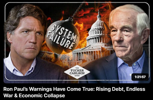 (Watch Senator Ron Paul … back in 2002 … getting it right! (Read his book - ‘End The Fed’ … excerpts are on one of my posts … and be shocked!) … If the ‘general public’ had ‘taken more notice’ of what was actually going on in the US, the UK, and Germany … in the 1920’s and 1930’s … there would not have been a ‘Great Depression’ … or WWII … and 5.5 billion people would not have been injected with ‘genetic poison’ since 2020 … and, if that statement were to sink in … to enough MSM brainwashed minds … right now … there wouldn’t be any ‘WWIII’ either … let thank ‘sink in’ … if ‘you’ can Smurfs!)